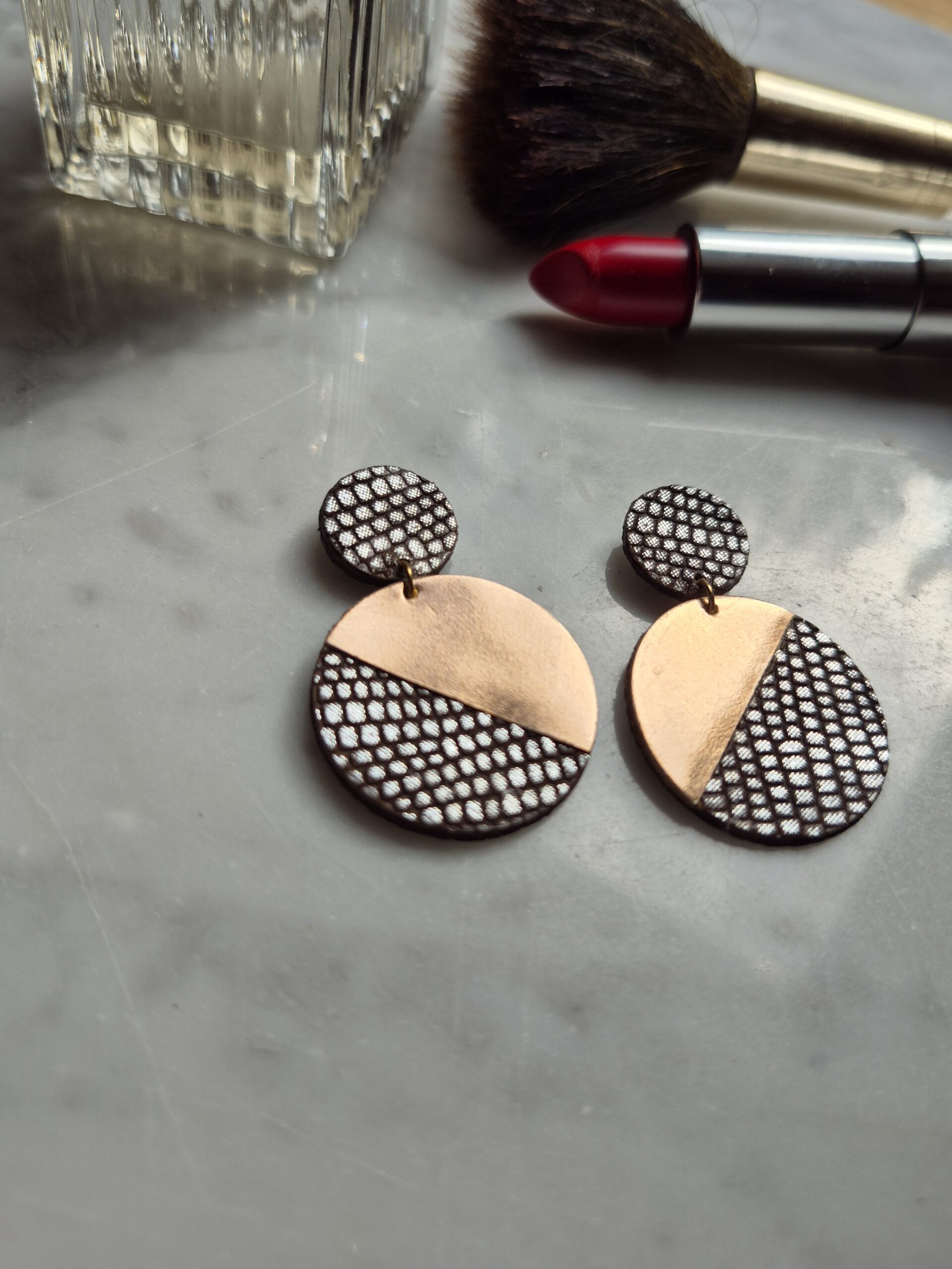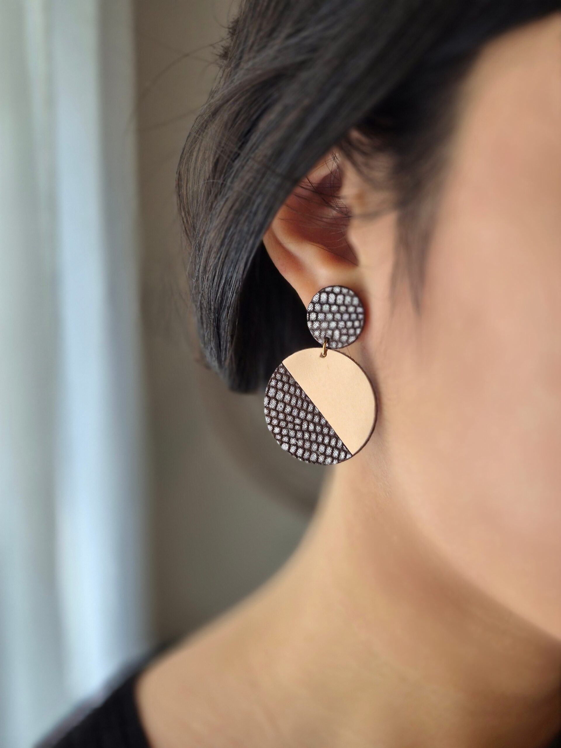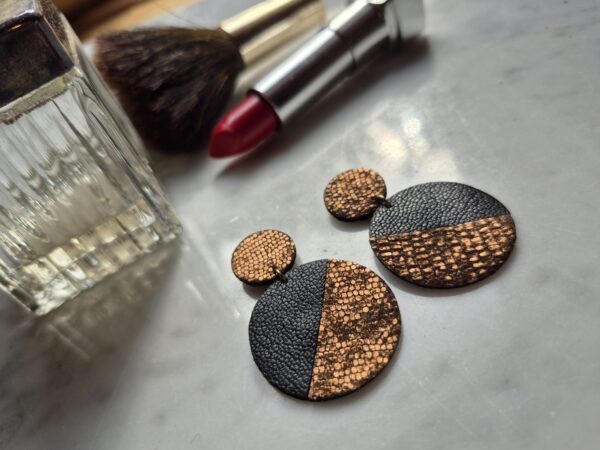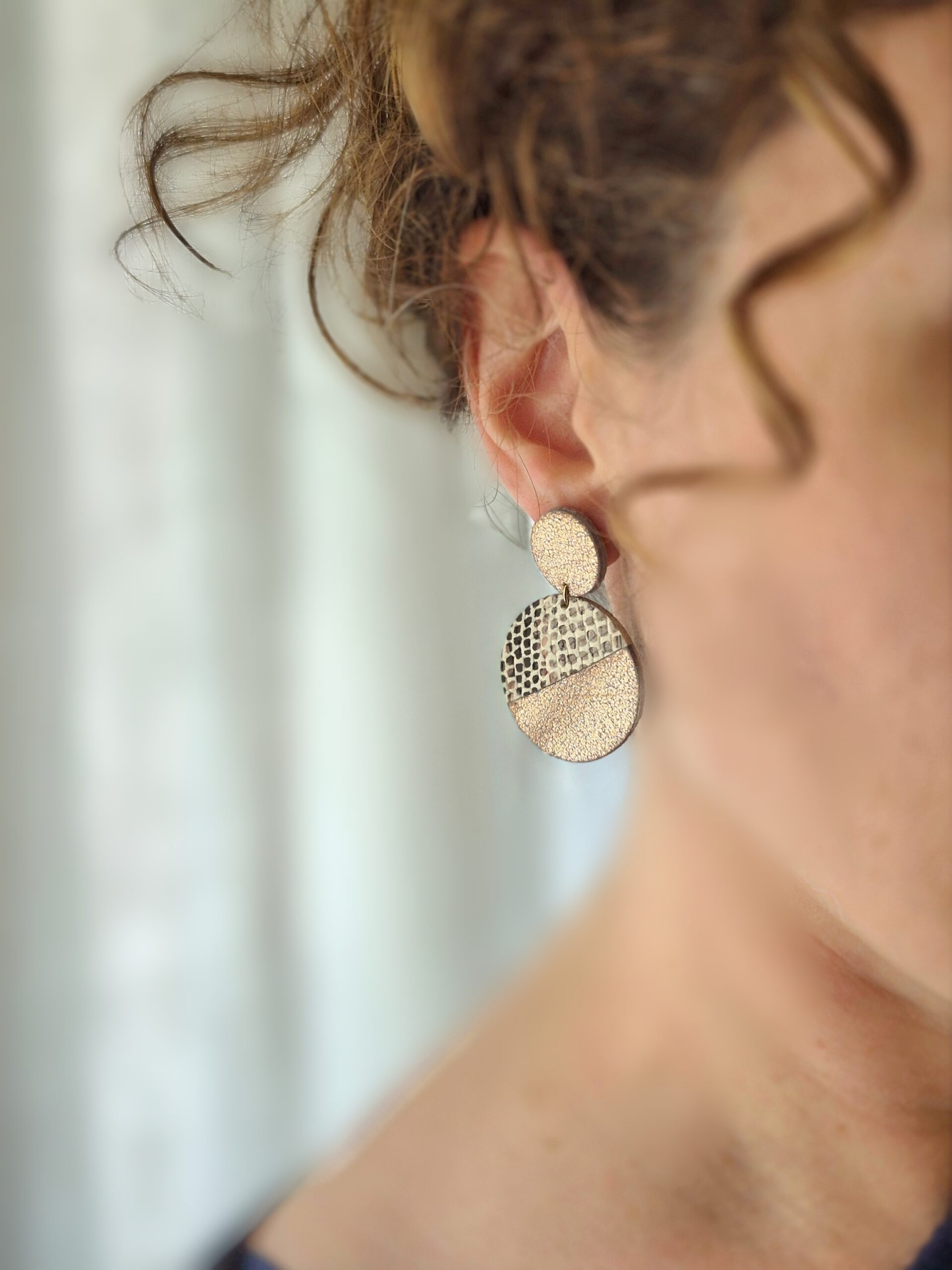 Des boucles d’oreilles uniques, légères et pleine de personnalité. Un peu de pep’s et beaucoup de style avec ces cuirs irisés, effet python ou pailleté… Car recycler peut aussi rimer avec briller !